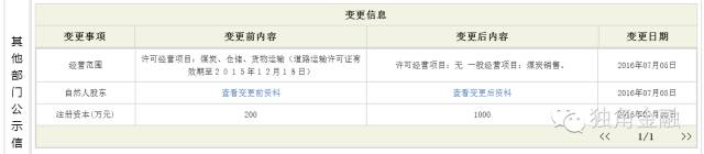 2016年7月5日,赤峰跃隆煤炭储运有限责任公司注册资本从200万元增至1000万元。